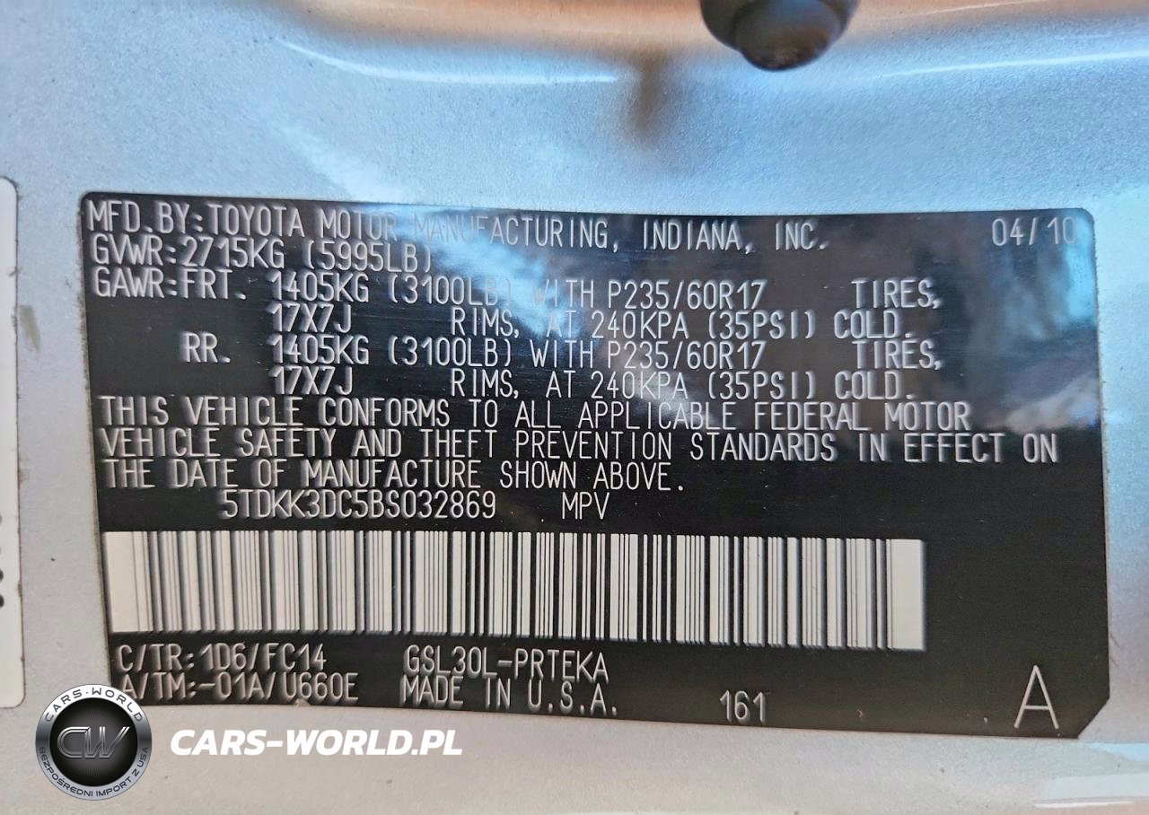 Copart Nr: C-79064915 VIN: 5TDKK3DC5BS032869 Port: Los Angeles, CA