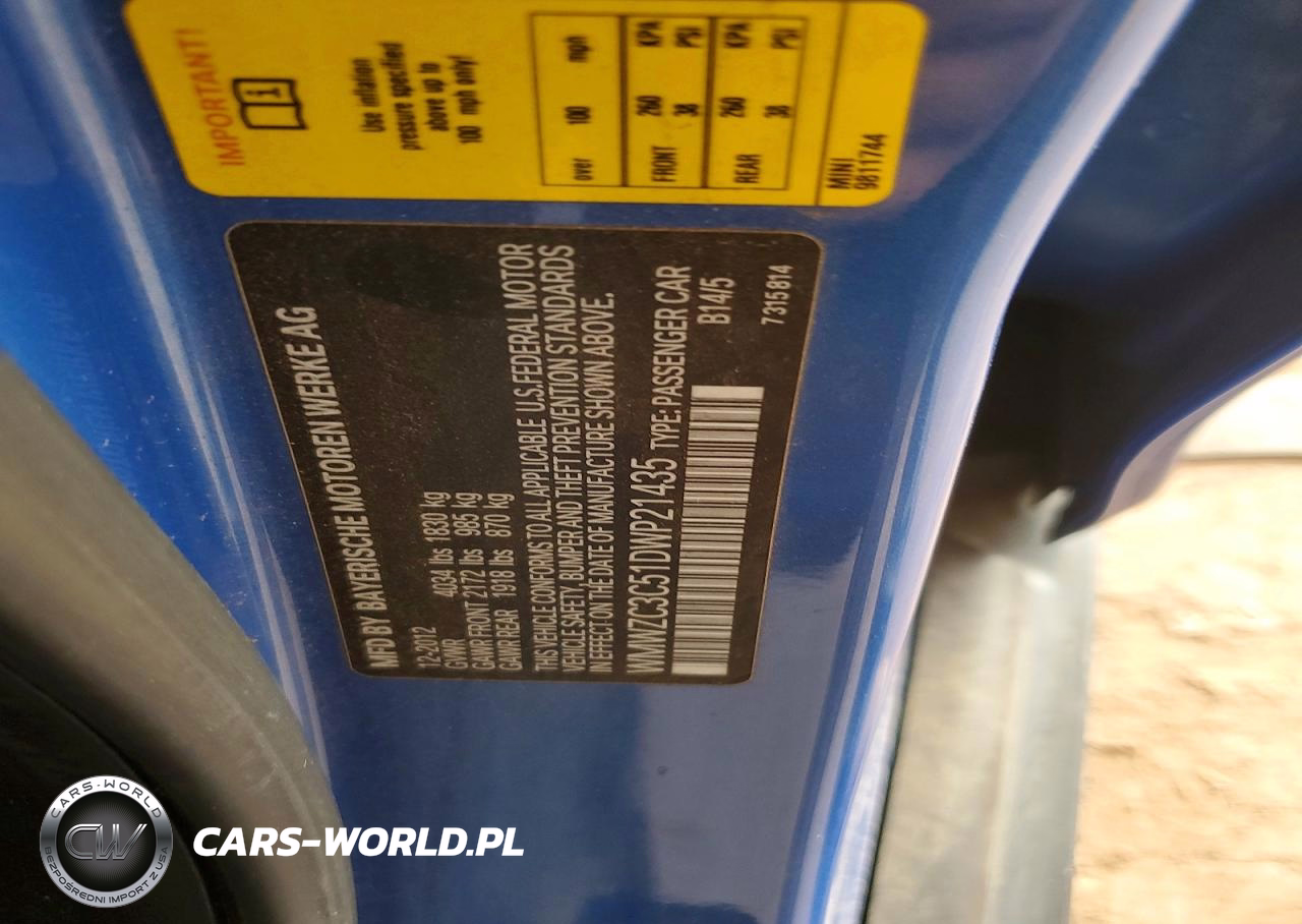 Copart Nr: C-79088955 VIN: WMWZC3C51DWP21435 Port: Los Angeles, CA