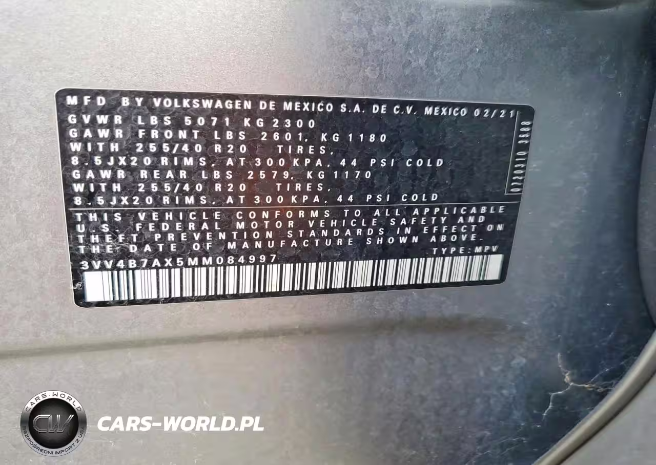 Copart Nr: C-79089255 VIN: 3VV4B7AX5MM084997 Port: Savannah, GA