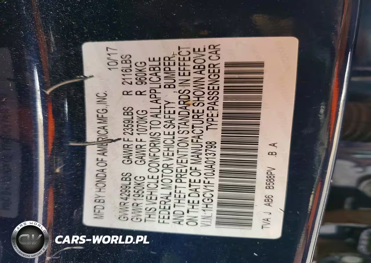 Copart Nr: C-79123725 VIN: 1HGCV1F10JA013798 Port: Elizabeth, NJ