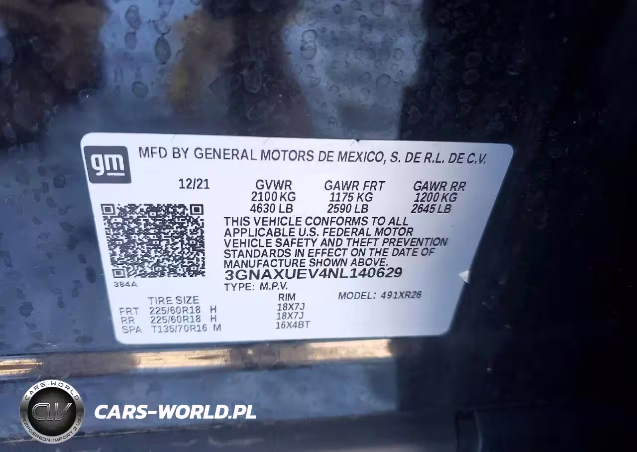 Copart Nr: C-79168615 VIN: 3GNAXUEV4NL140629 Port: Elizabeth, NJ