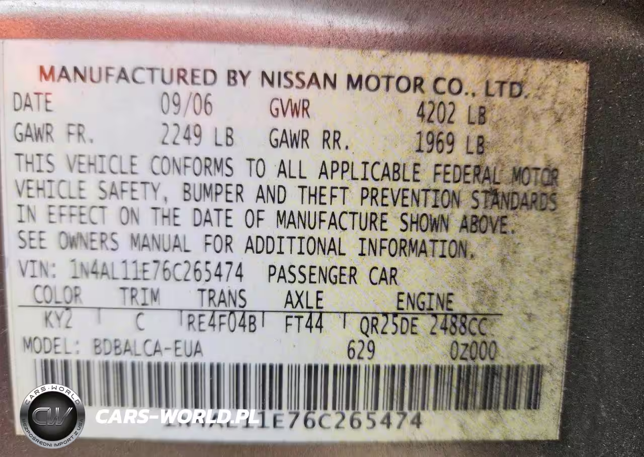 Copart Nr: C-79175445 VIN: 1N4AL11E76C265474 Port: Elizabeth, NJ