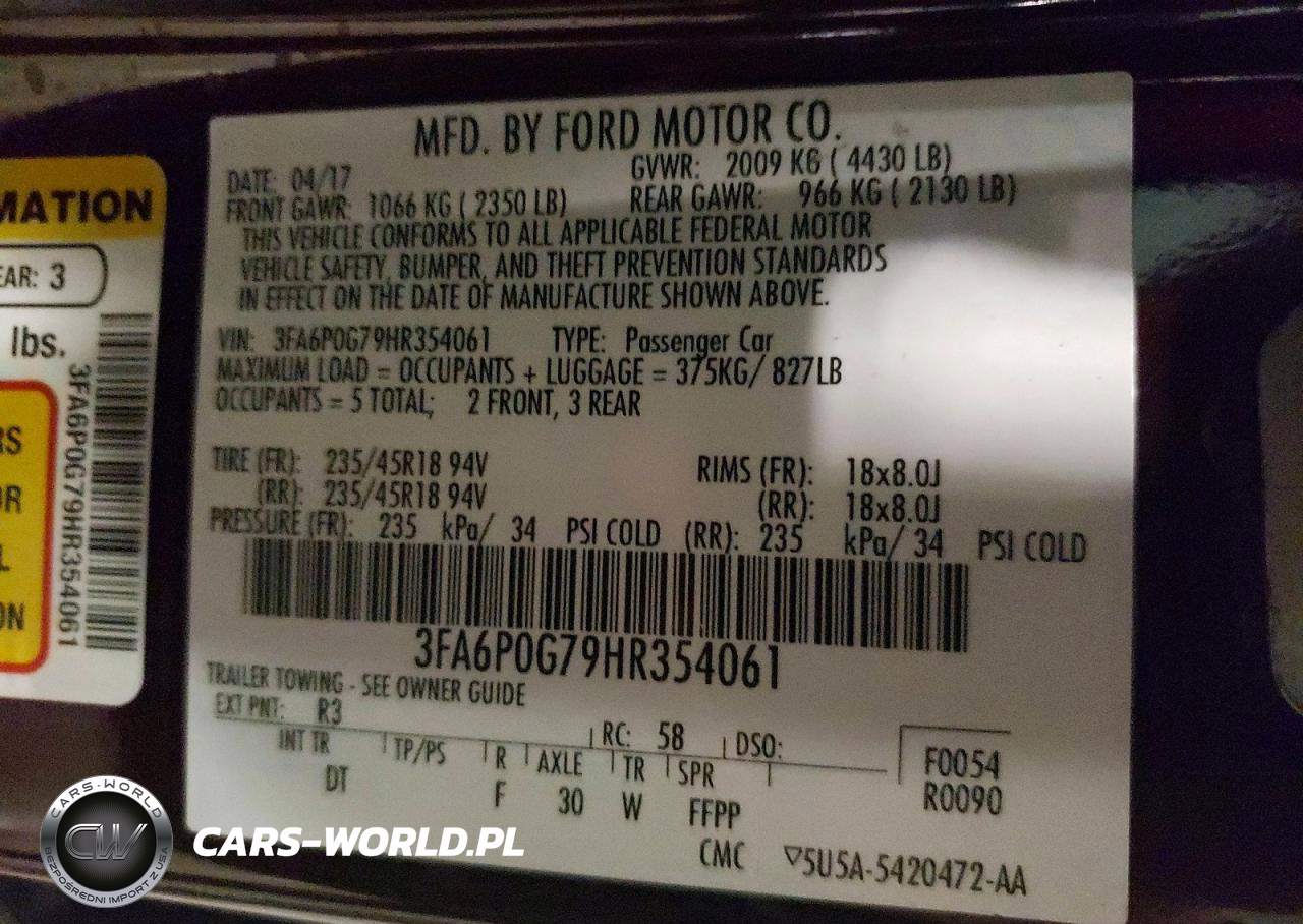 Copart Nr: C-79188885 VIN: 3FA6P0G79HR354061 Port: Indianapolis, IN