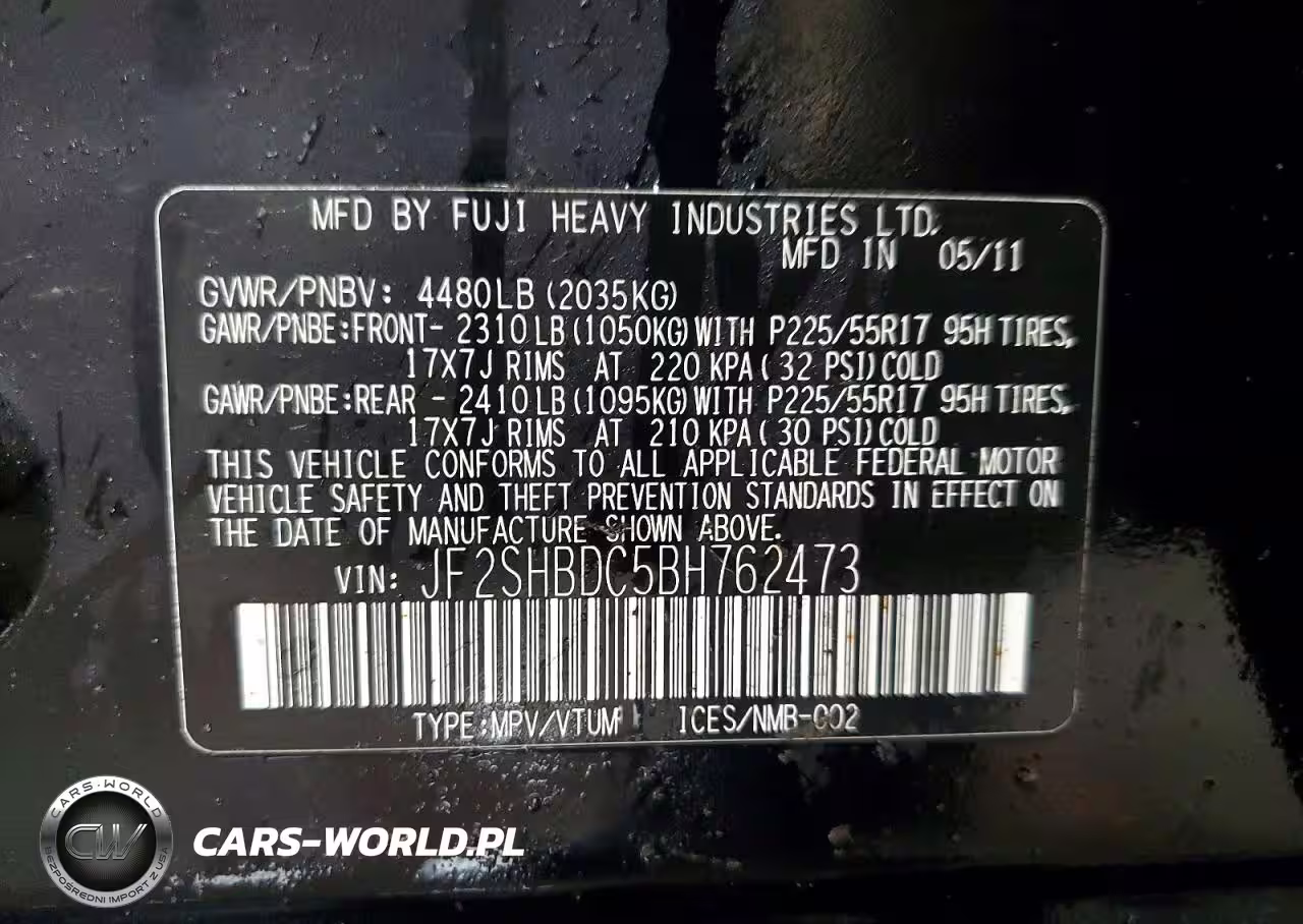Copart Nr: C-79193985 VIN: JF2SHBDC5BH762473 Port: Indianapolis, IN