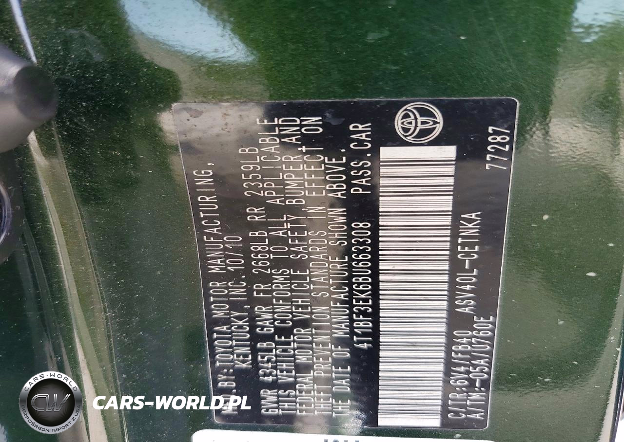 Copart Nr: C-79211105 VIN: 4T1BF3EK6BU663308 Port: Savannah, GA