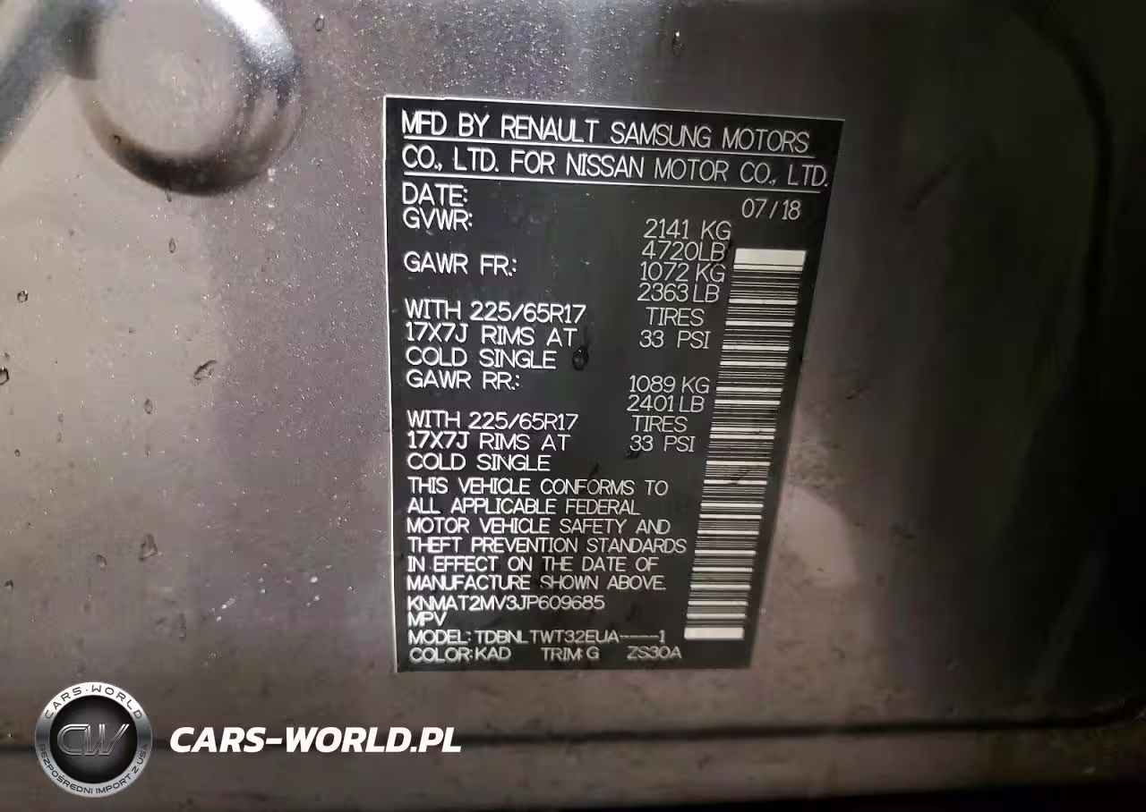 Copart Nr: C-79216135 VIN: KNMAT2MV3JP609685 Port: Elizabeth, NJ