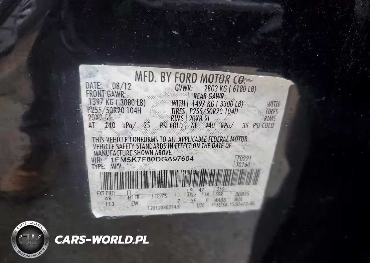 Copart Nr: C-79227165 VIN: 1FM5K7F80DGA97604 Port: Indianapolis, IN