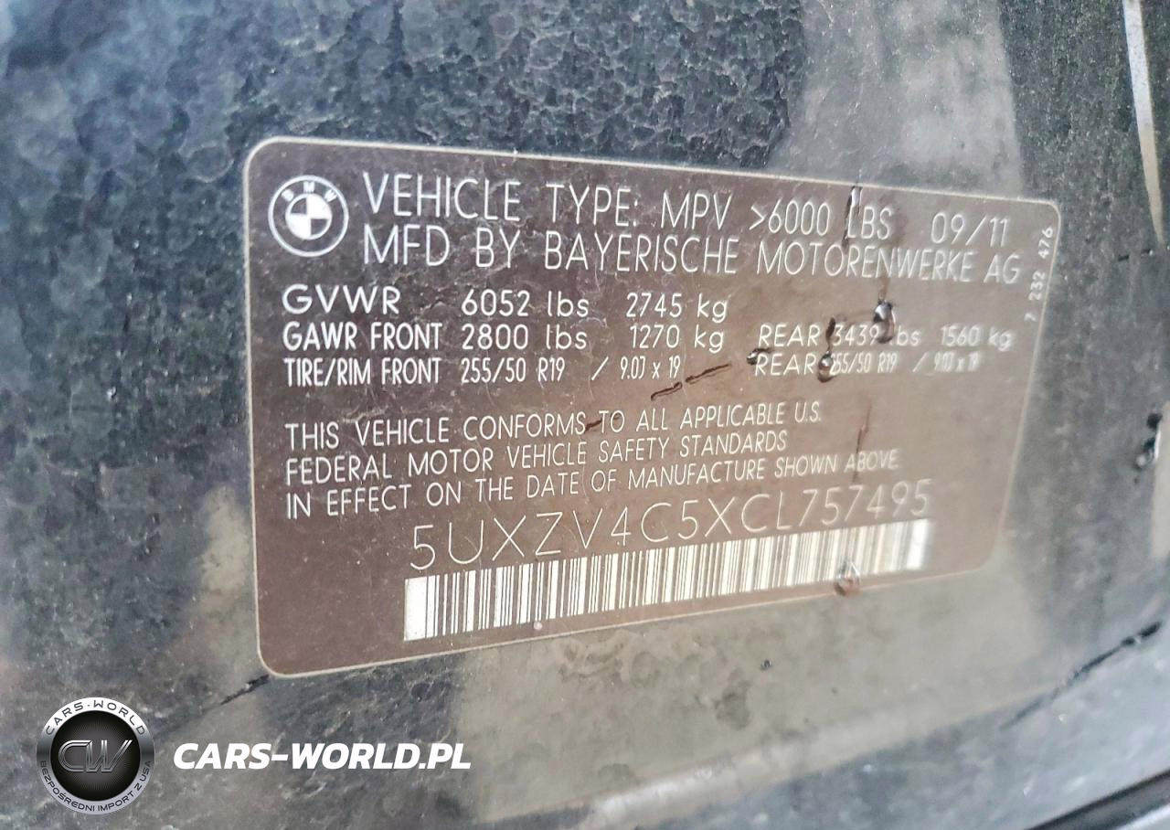 Copart Nr: C-79228755 VIN: 5UXZV4C5XCL757495 Port: Savannah, GA