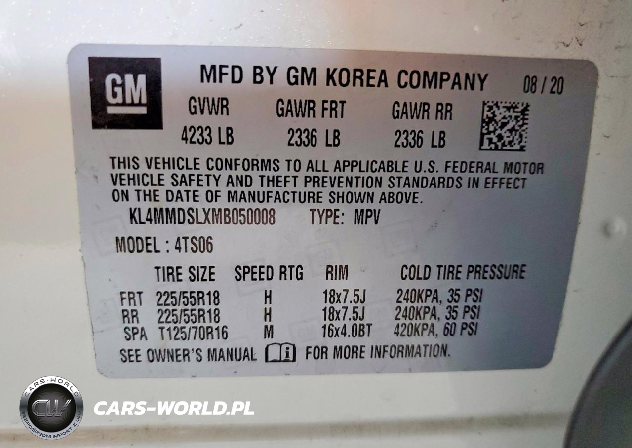 Copart Nr: C-79230755 VIN: KL4MMDSLXMB050008 Port: Los Angeles, CA