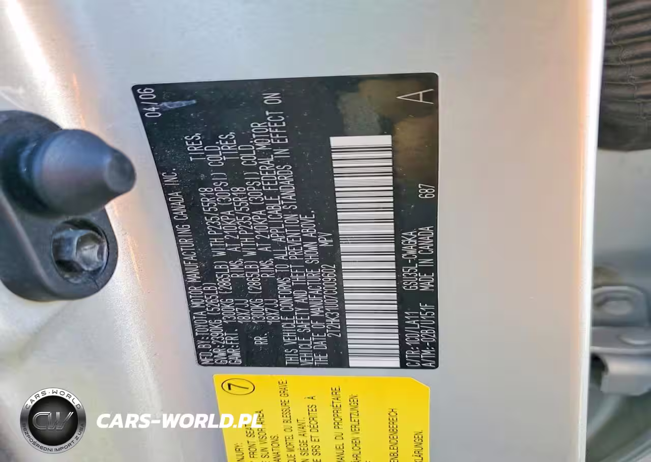 Copart Nr: C-79230945 VIN: 2T2HK31U07C009602 Port: Indianapolis, IN