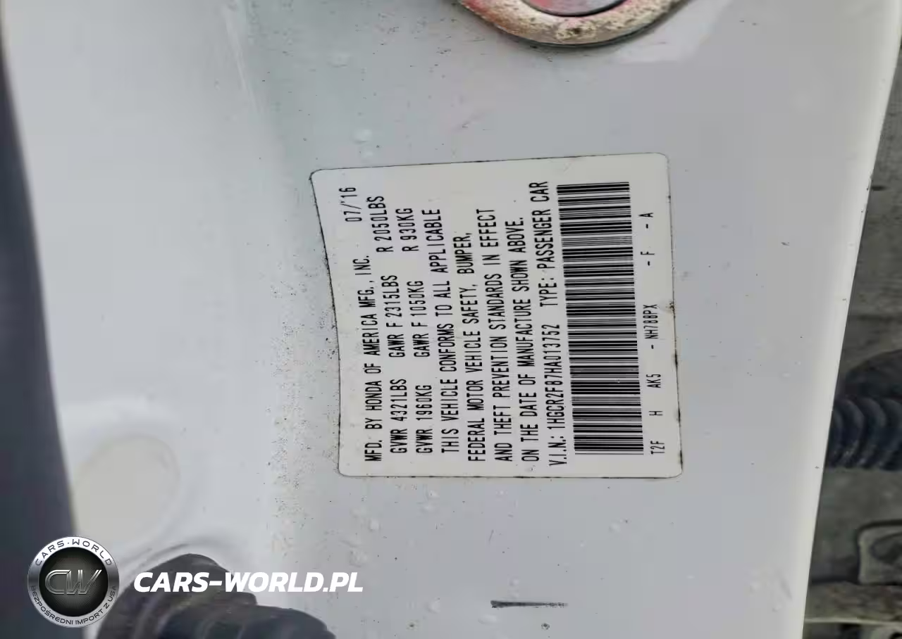 Copart Nr: C-79233495 VIN: 1HGCR2F87HA013752 Port: Savannah, GA