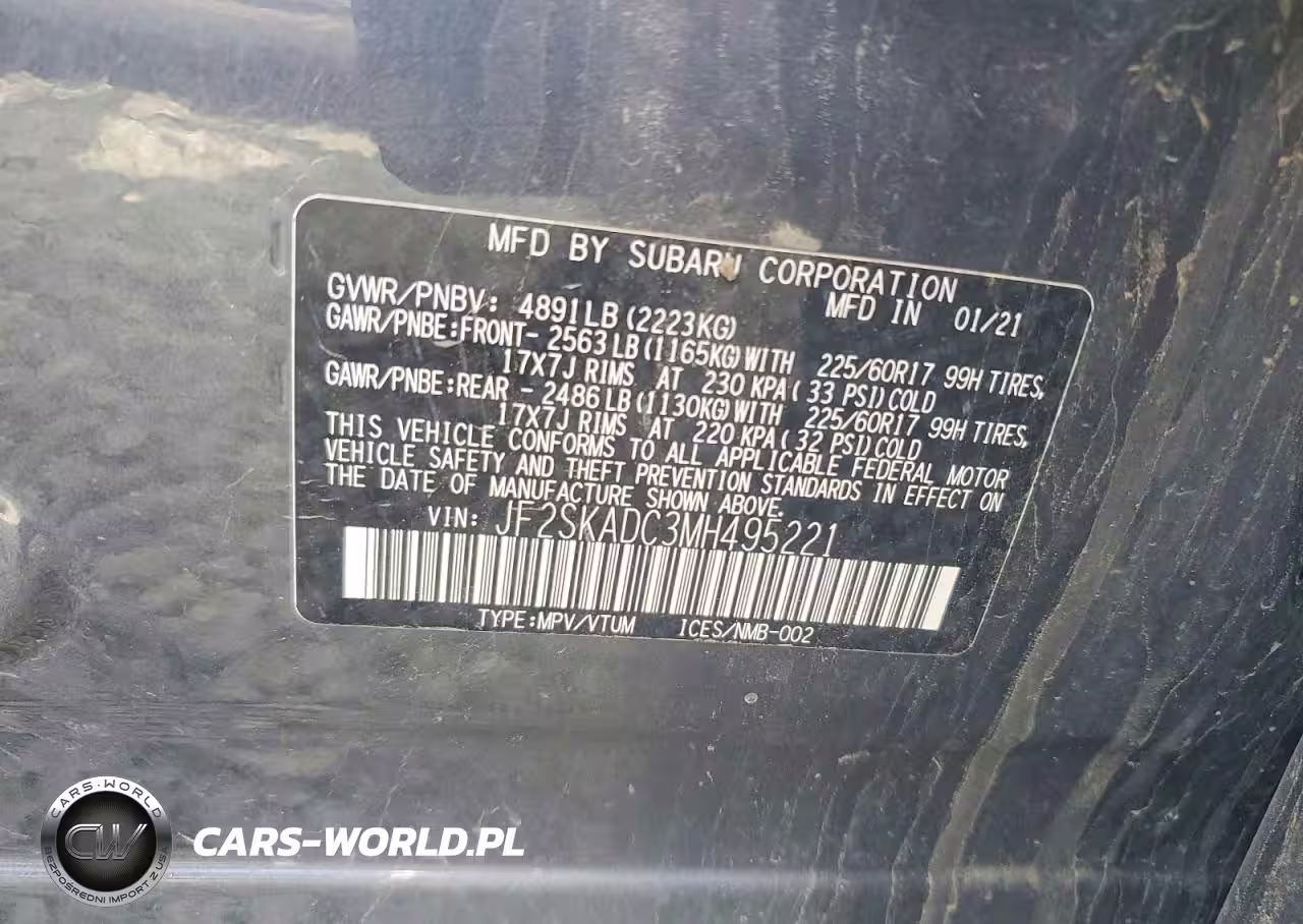 Copart Nr: C-79250725 VIN: JF2SKADC3MH495221 Port: Los Angeles, CA