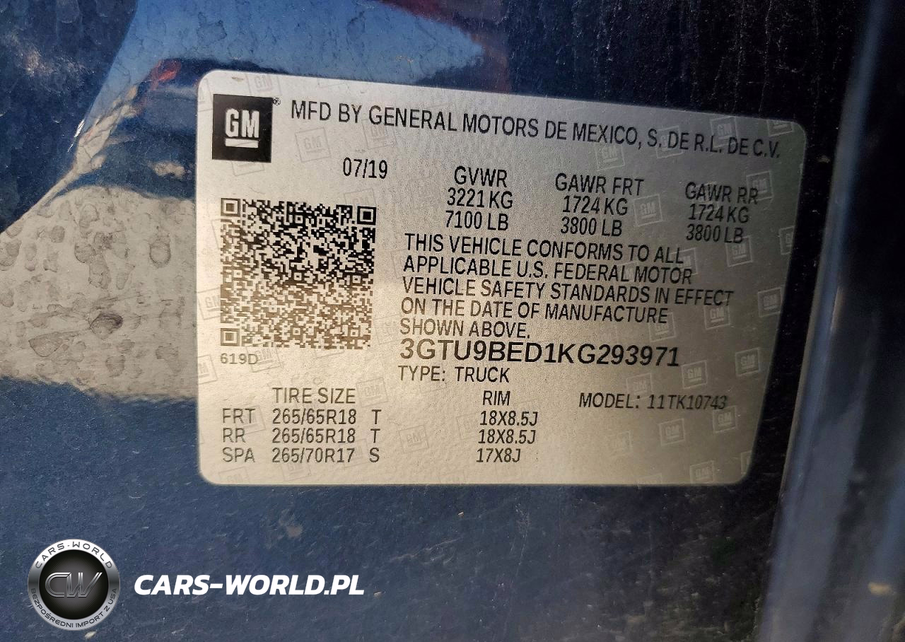 Copart Nr: C-79256135 VIN: 3GTU9BED1KG293971 Port: Houston, TX