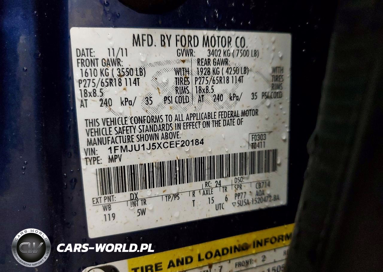 Copart Nr: C-79274575 VIN: 1FMJU1J5XCEF20184 Port: Indianapolis, IN