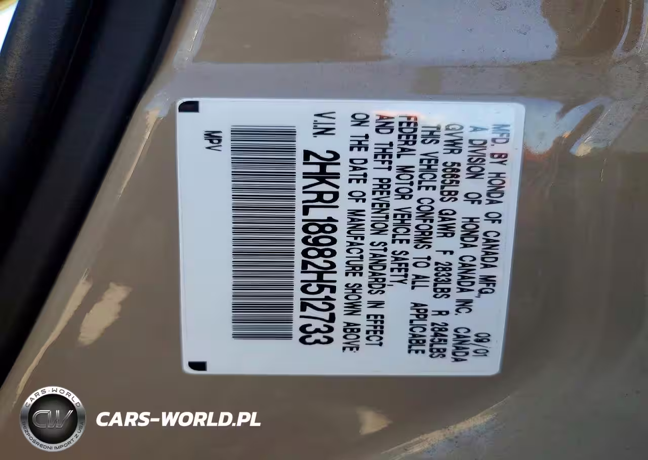 Copart Nr: C-79276275 VIN: 2HKRL18982H512733 Port: Houston, TX