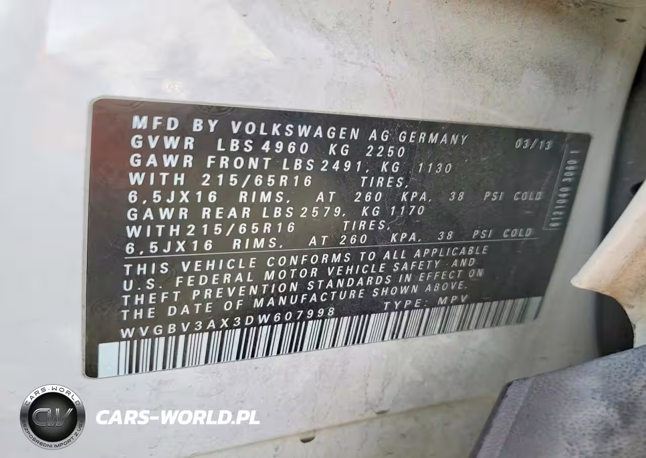 Copart Nr: C-79290605 VIN: WVGBV3AX3DW607998 Port: Los Angeles, CA