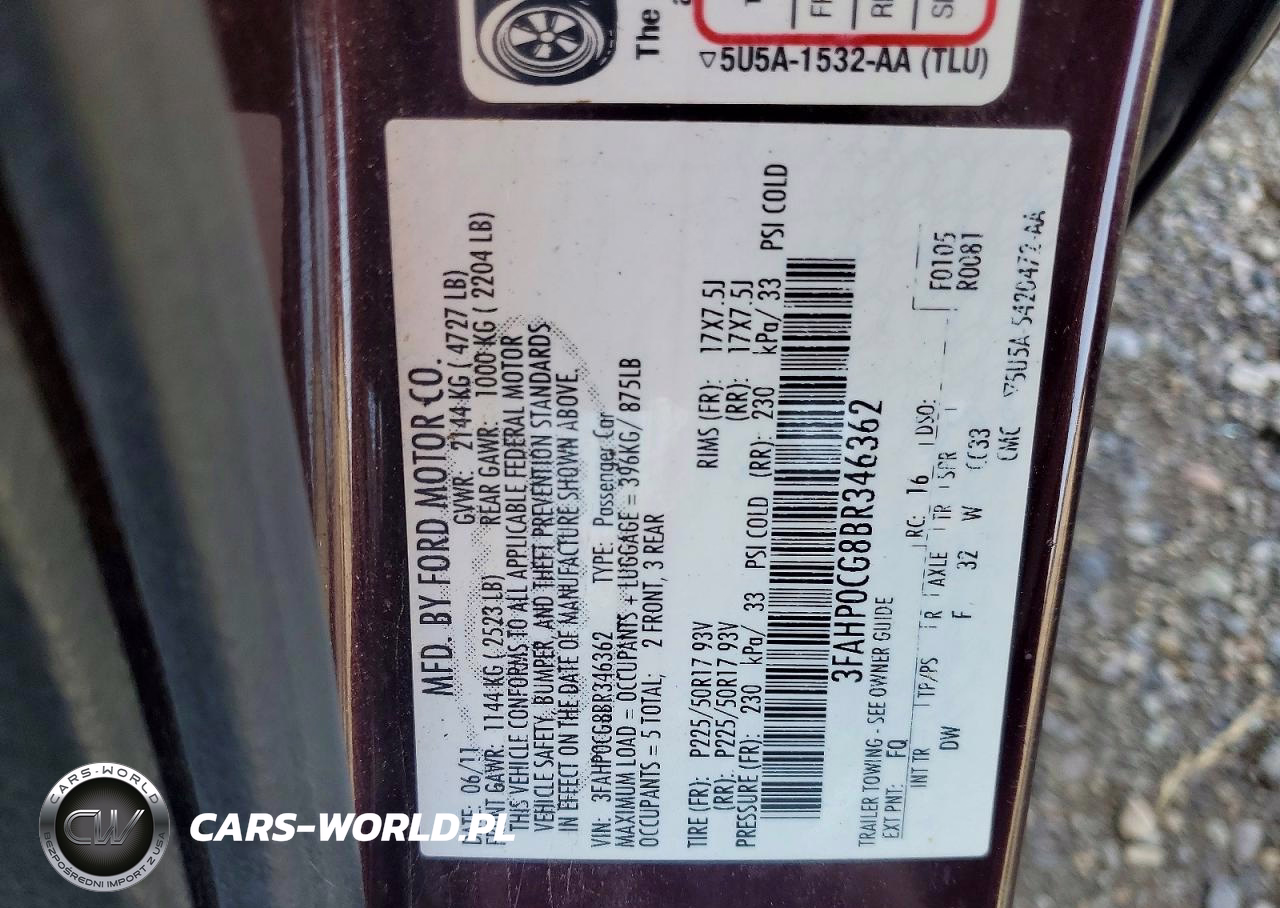 Copart Nr: C-79299055 VIN: 3FAHP0CG8BR346362 Port: Los Angeles, CA