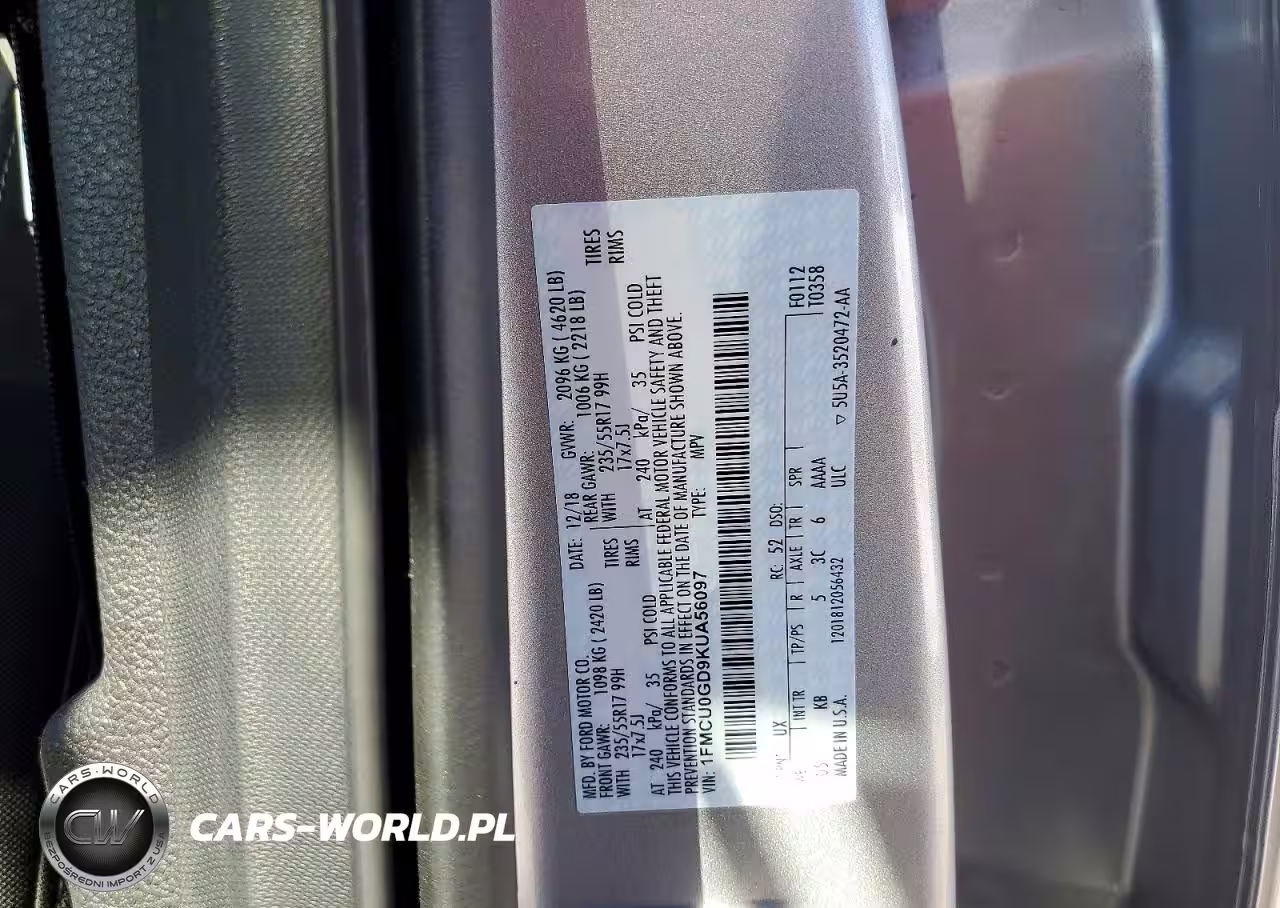 Copart Nr: C-79303145 VIN: 1FMCU0GD9KUA56097 Port: Los Angeles, CA