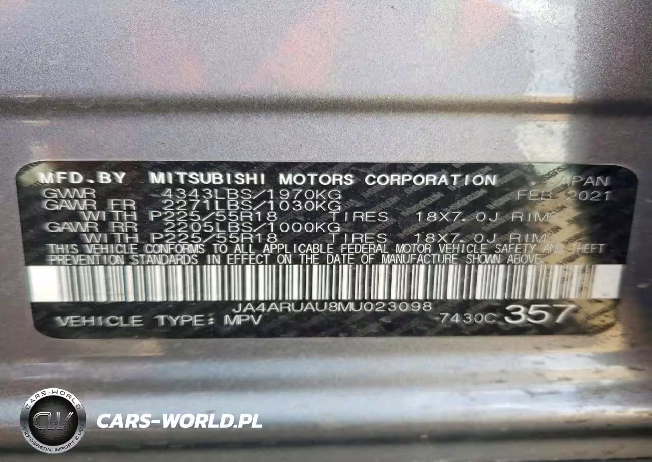 Copart Nr: C-79317785 VIN: JA4ARUAU8MU023098 Port: Houston, TX