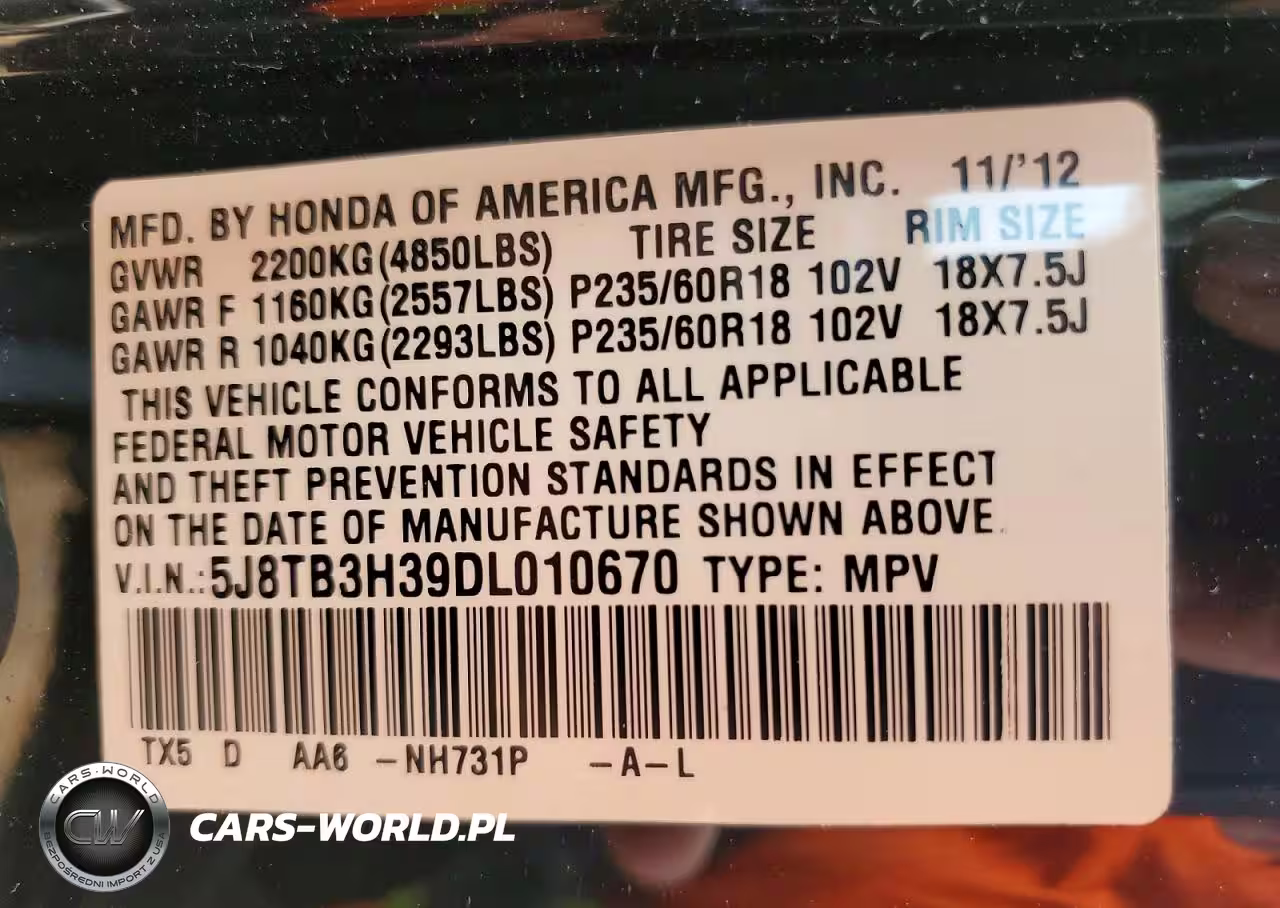 Copart Nr: C-79337745 VIN: 5J8TB3H39DL010670 Port: Savannah, GA
