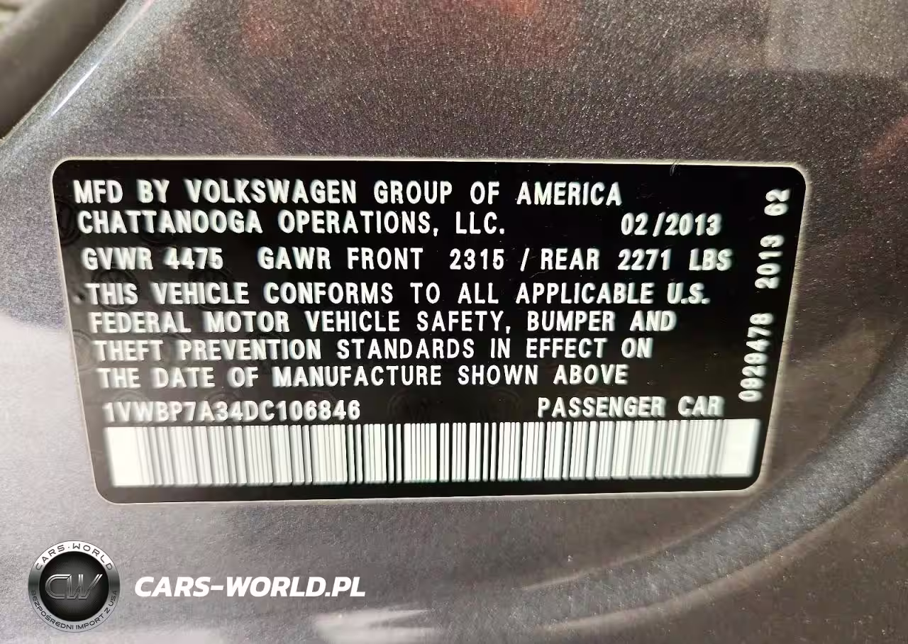 Copart Nr: C-79356675 VIN: 1VWBP7A34DC106846 Port: Elizabeth, NJ