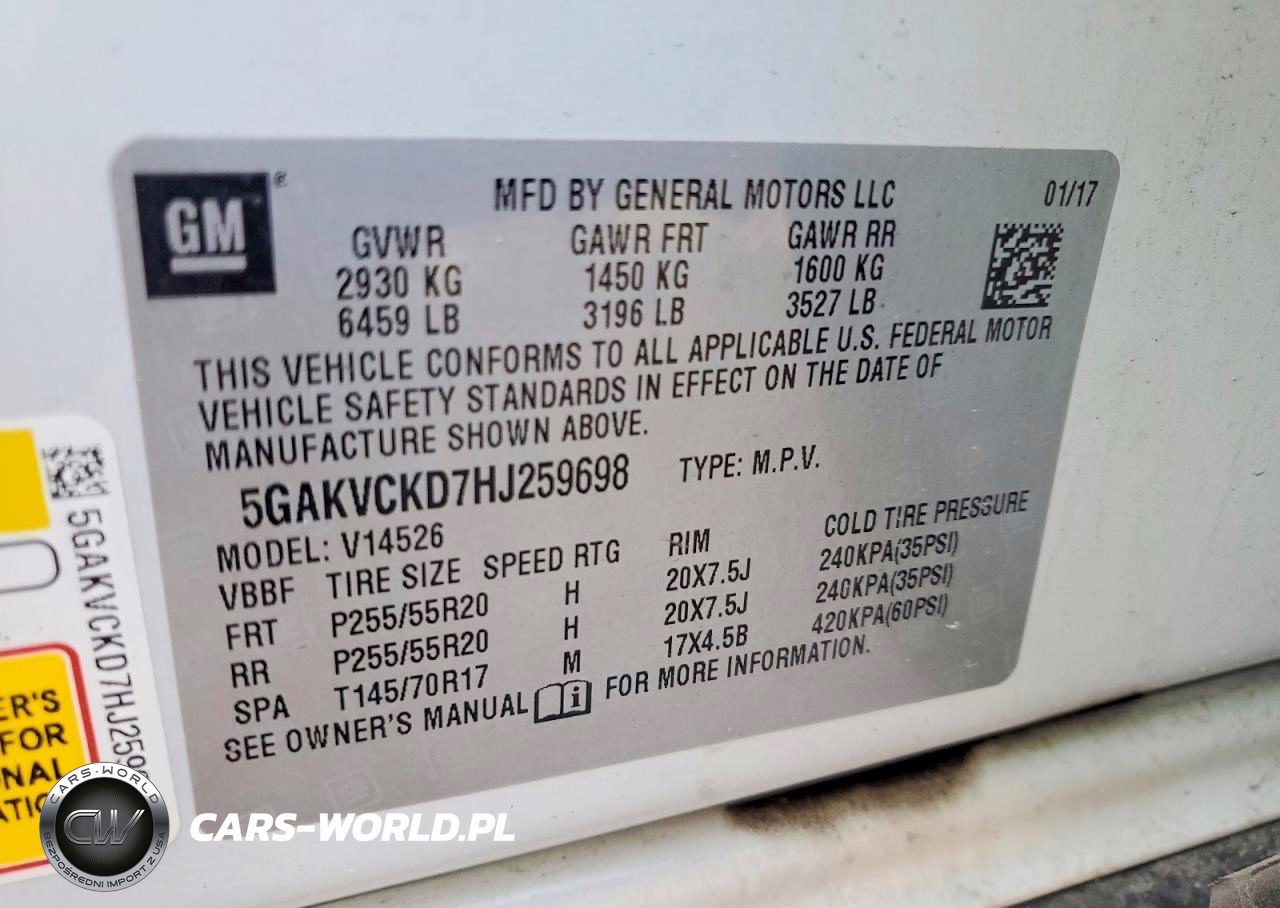 Copart Nr: C-79393795 VIN: 5GAKVCKD7HJ259698 Port: Indianapolis, IN