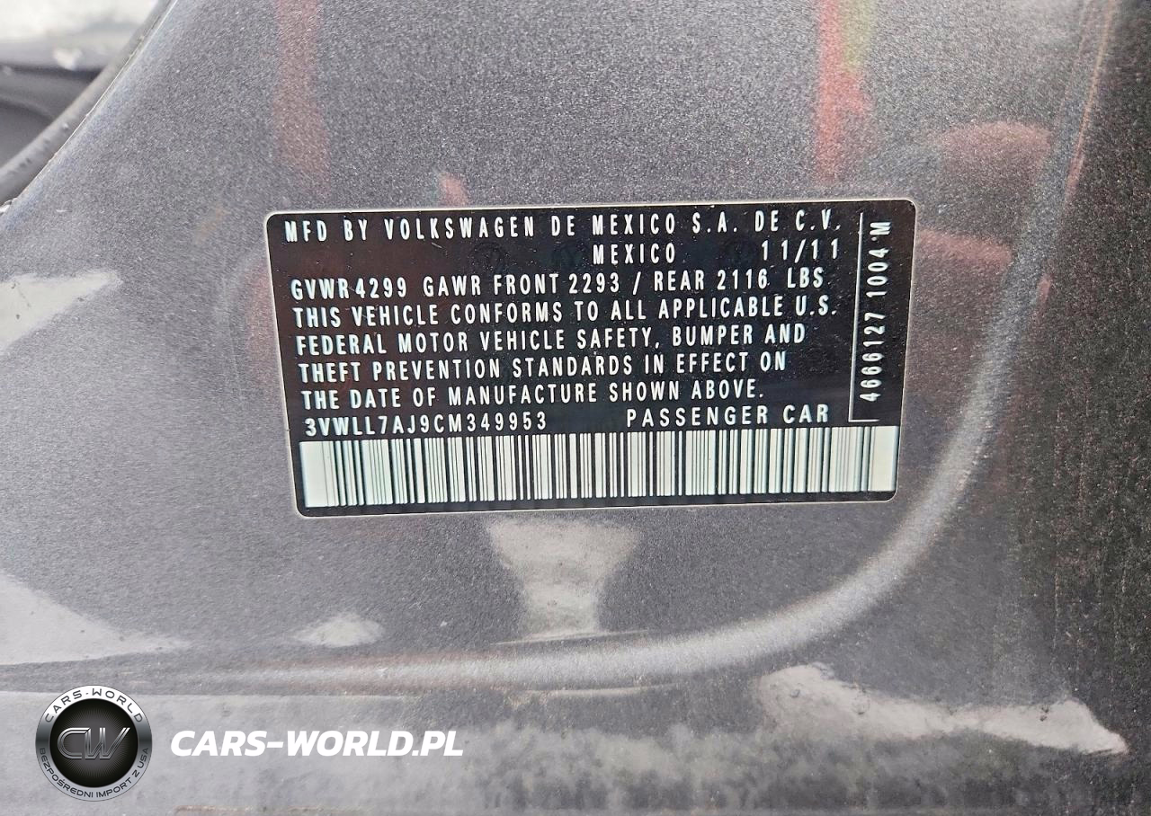 Copart Nr: C-79405345 VIN: 3VWLL7AJ9CM349953 Port: Elizabeth, NJ