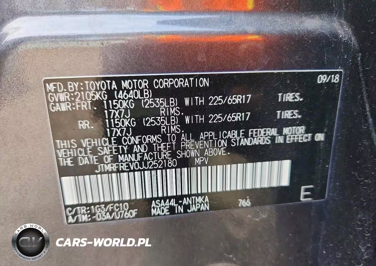 Copart Nr: C-79430755 VIN: JTMRFREV0JJ252180 Port: Savannah, GA