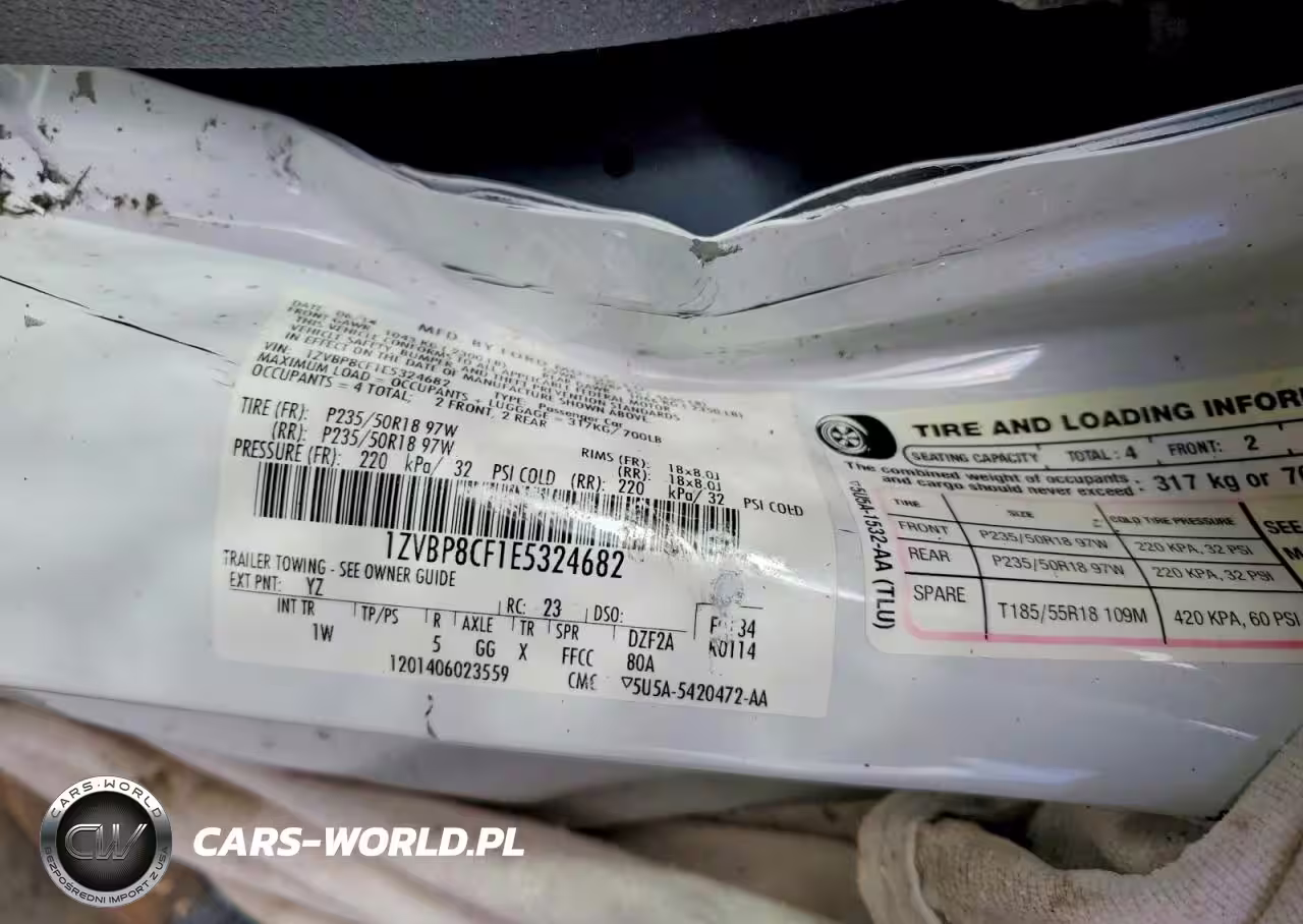 Copart Nr: C-79432925 VIN: 1ZVBP8CF1E5324682 Port: Elizabeth, NJ