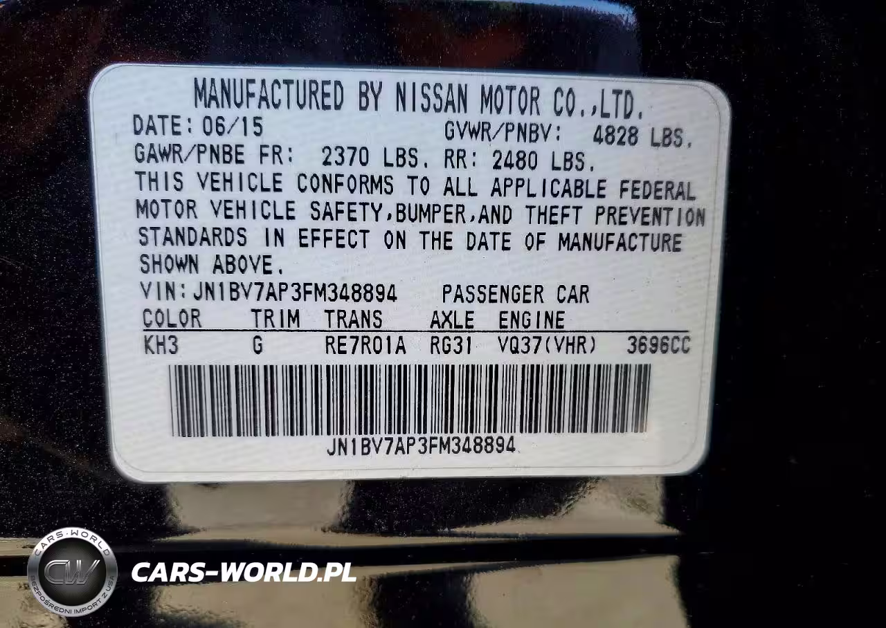 Copart Nr: C-79481115 VIN: JN1BV7AP3FM348894 Port: Los Angeles, CA