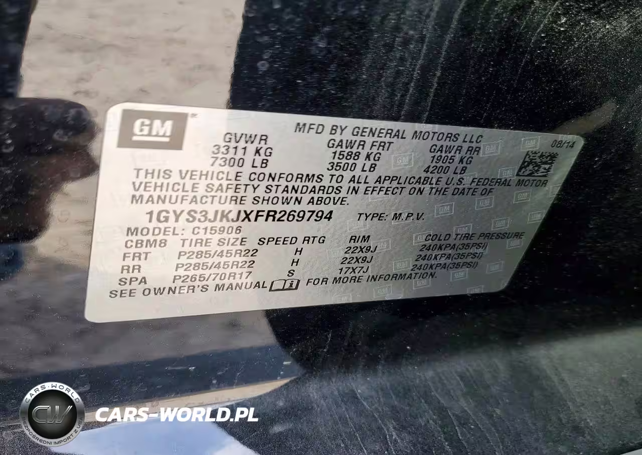 Copart Nr: C-79492935 VIN: 1GYS3JKJXFR269794 Port: Houston, TX