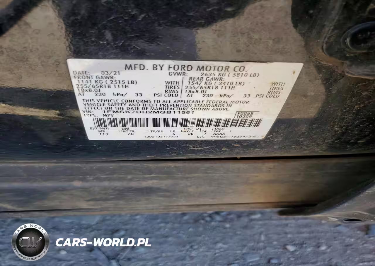 Copart Nr: C-79552465 VIN: 1FMSK7BH2MGB11561 Port: Houston, TX
