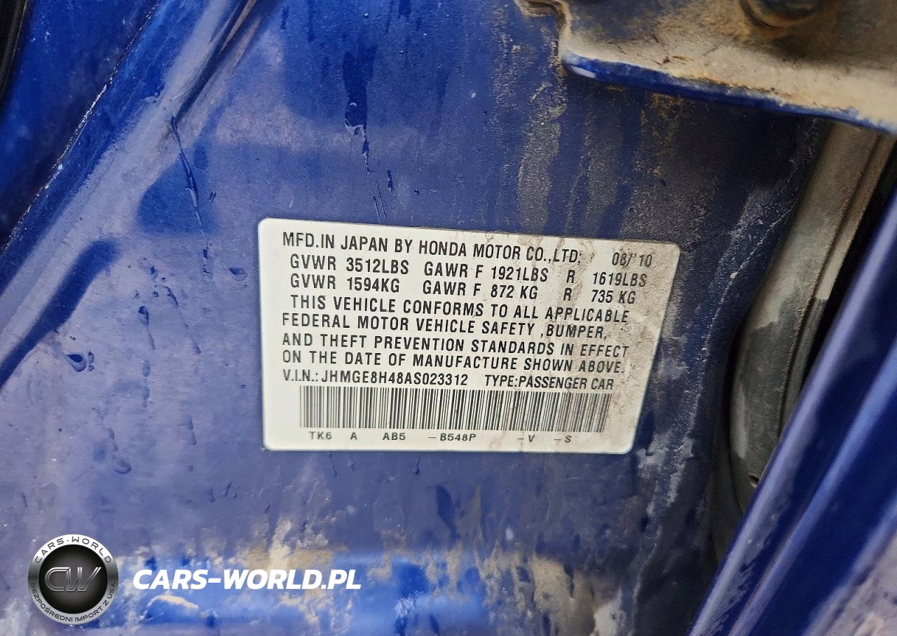 Copart Nr: C-79552905 VIN: JHMGE8H48AS023312 Port: Los Angeles, CA