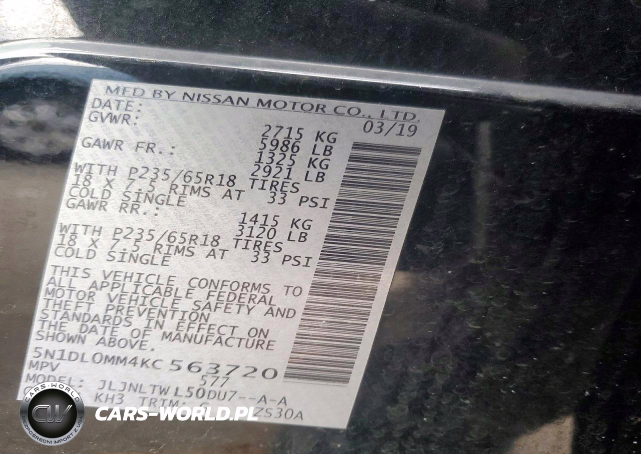 Copart Nr: C-79583725 VIN: 5N1DL0MM4KC563720 Port: Elizabeth, NJ