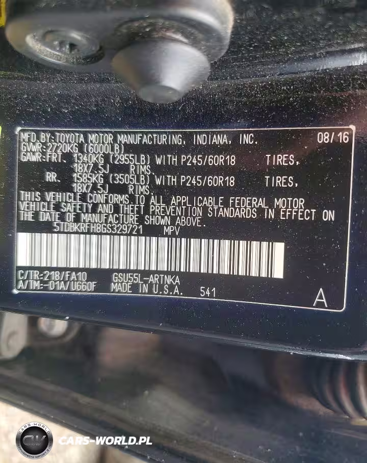 Copart Nr: C-79595275 VIN: 5TDBKRFH8GS329721 Port: Savannah, GA