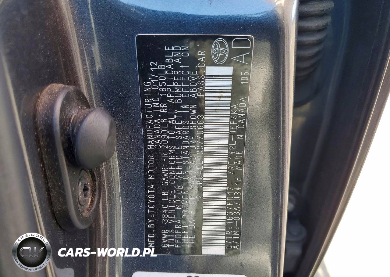 Copart Nr: C-79614325 VIN: 2T1BU4EE1CC770663 Port: Los Angeles, CA