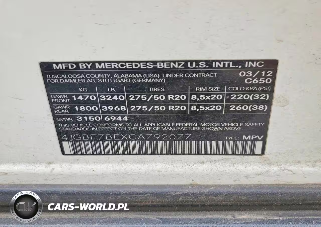 Copart Nr: C-79624445 VIN: 4JGBF7BEXCA792077 Port: Savannah, GA