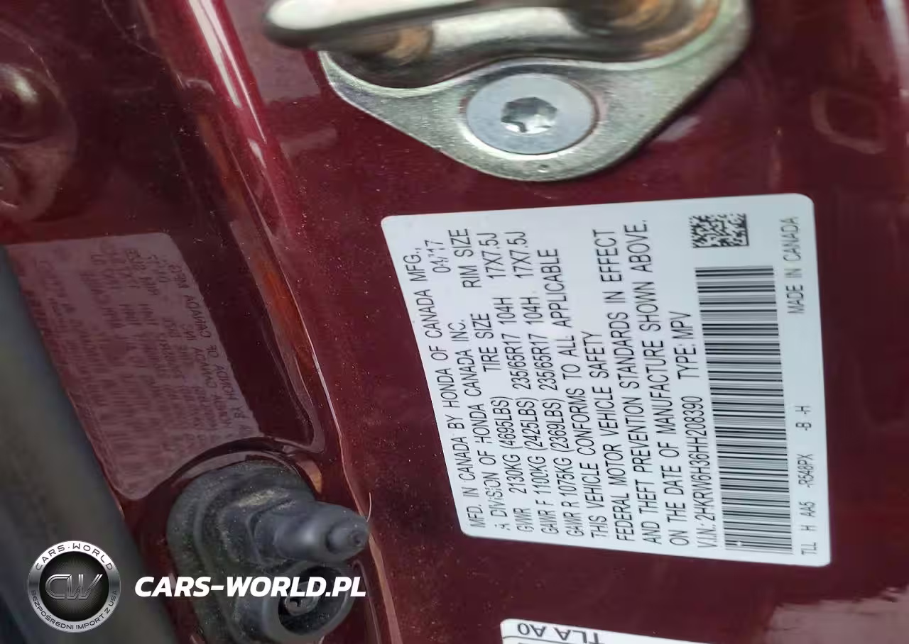 Copart Nr: C-79626405 VIN: 2HKRW6H36HH208390 Port: Indianapolis, IN