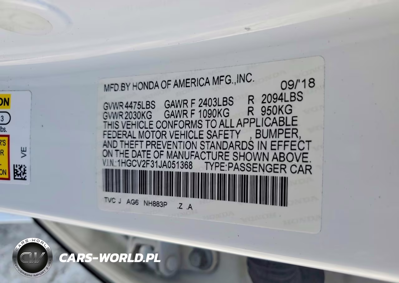 Copart Nr: C-79654615 VIN: 1HGCV2F31JA051368 Port: Savannah, GA