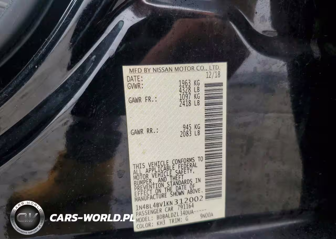 Copart Nr: C-79654735 VIN: 1N4BL4BV1KN312002 Port: Elizabeth, NJ
