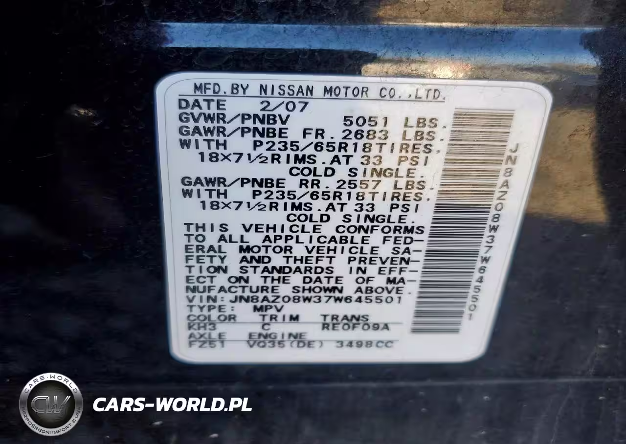 Copart Nr: C-79668165 VIN: JN8AZ08W37W645501 Port: Los Angeles, CA
