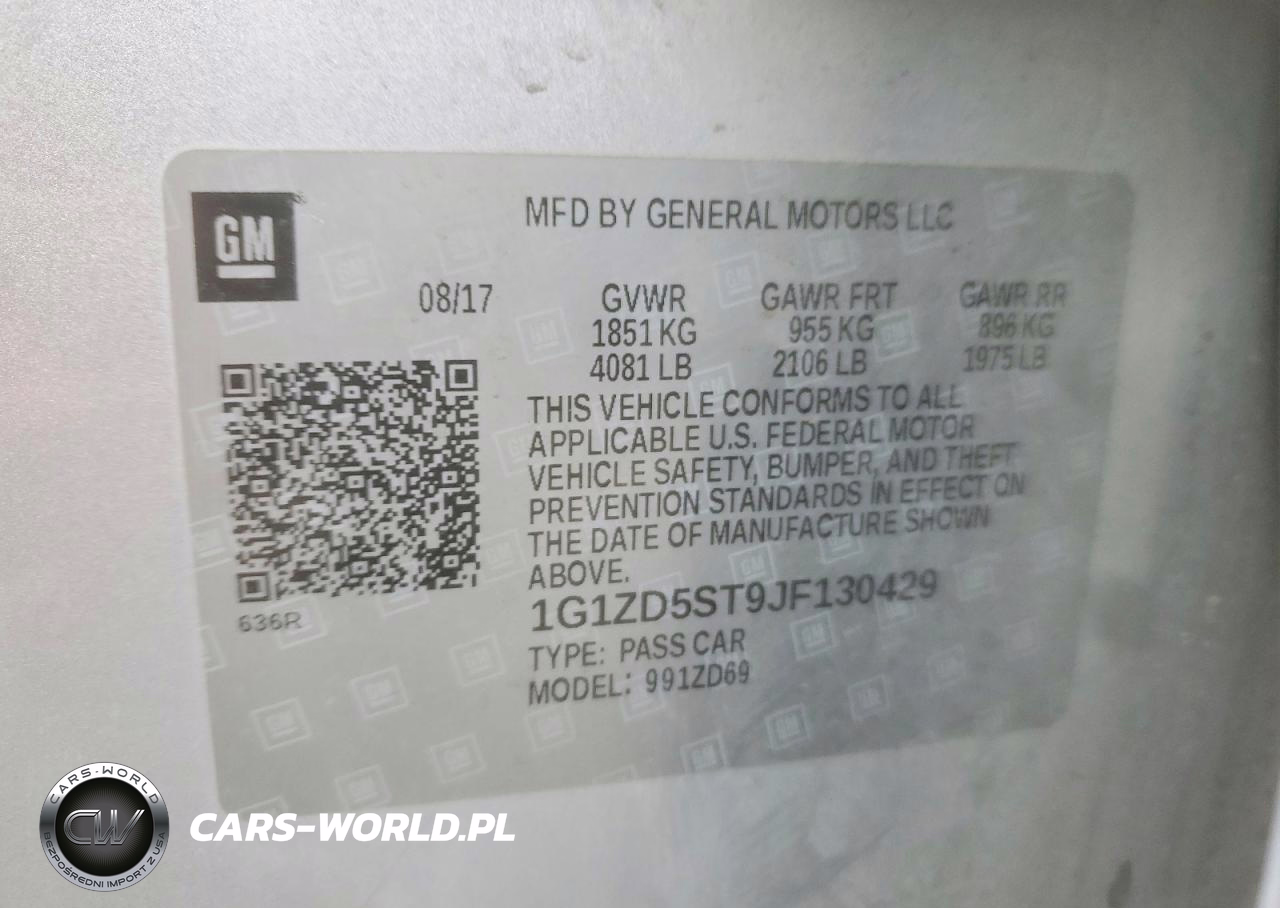 Copart Nr: C-79686095 VIN: 1G1ZD5ST9JF130429 Port: Los Angeles, CA