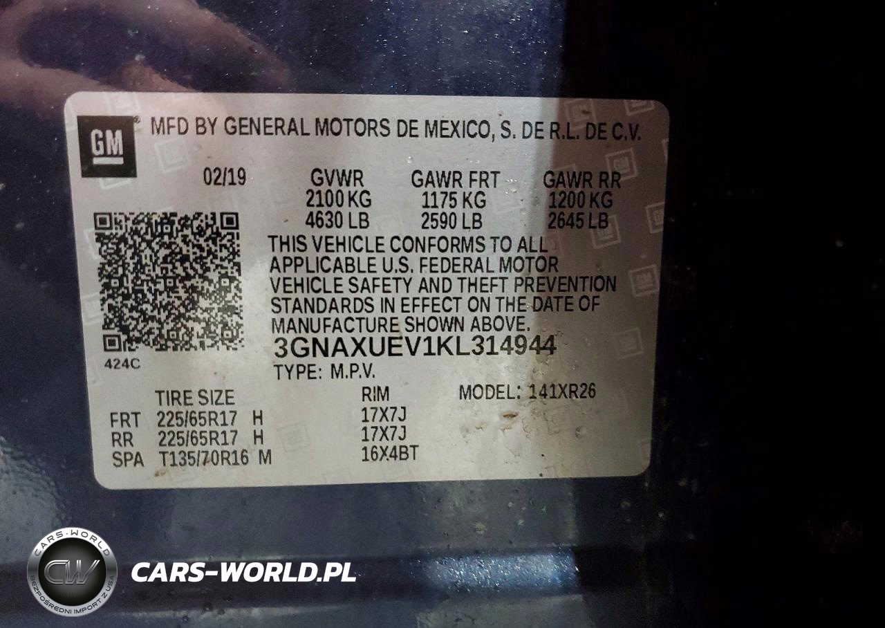 Copart Nr: C-79700865 VIN: 3GNAXUEV1KL314944 Port: Indianapolis, IN