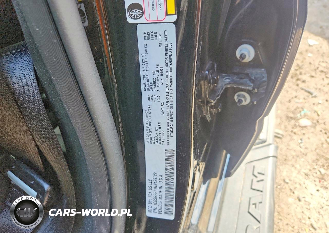 Copart Nr: C-79712945 VIN: 1C6SRFFT1NN139722 Port: Indianapolis, IN
