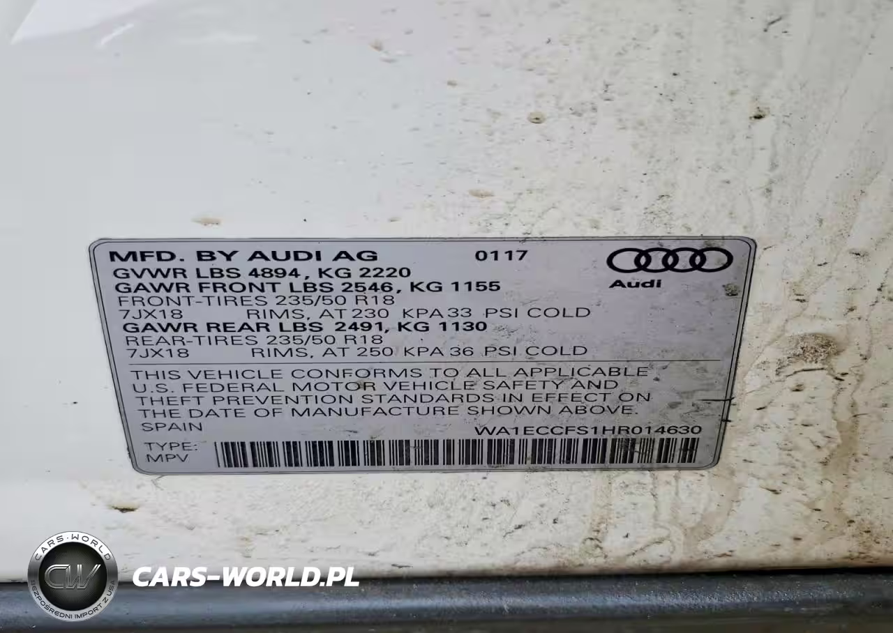 Copart Nr: C-79798215 VIN: WA1ECCFS1HR014630 Port: Elizabeth, NJ