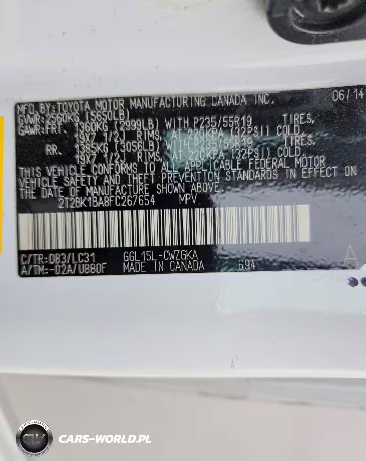 Copart Nr: C-79804935 VIN: 2T2BK1BA8FC267654 Port: Houston, TX