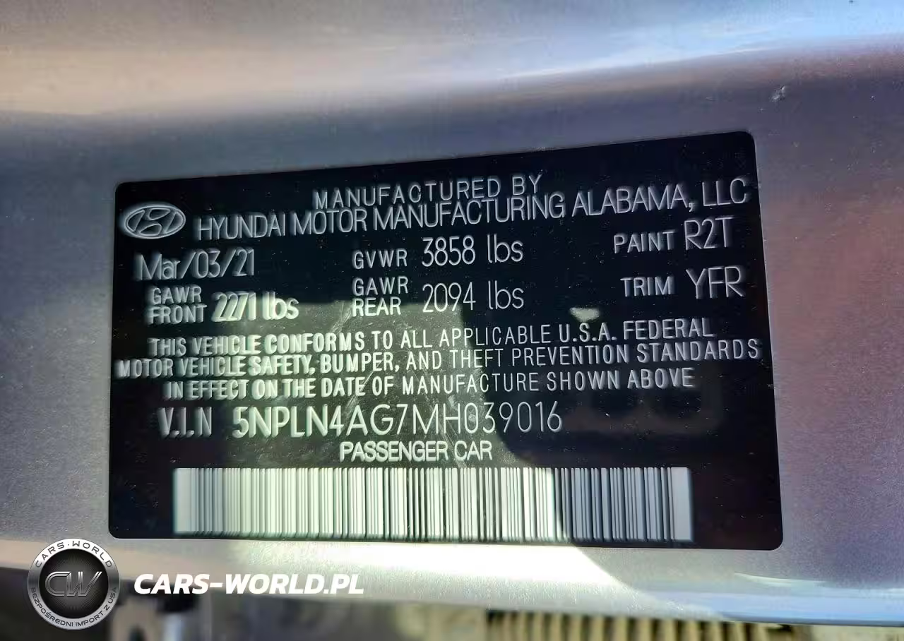 Copart Nr: C-79806595 VIN: 5NPLN4AG7MH039016 Port: Savannah, GA