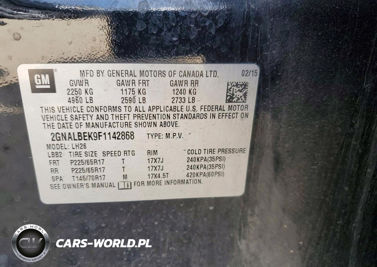 Copart Nr: C-79808225 VIN: 2GNALBEK9F1142868 Port: Houston, TX