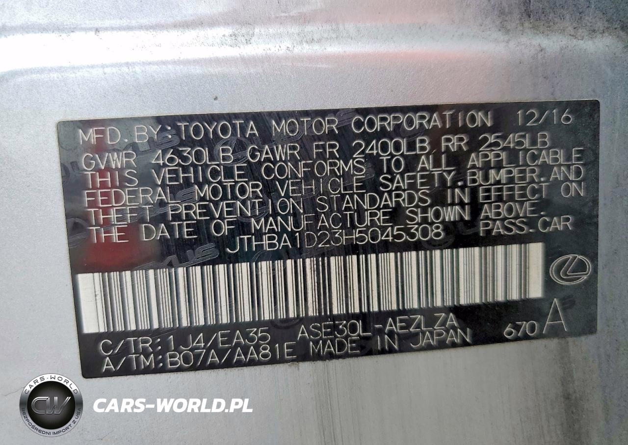 Copart Nr: C-79915455 VIN: JTHBA1D23H5045308 Port: Savannah, GA
