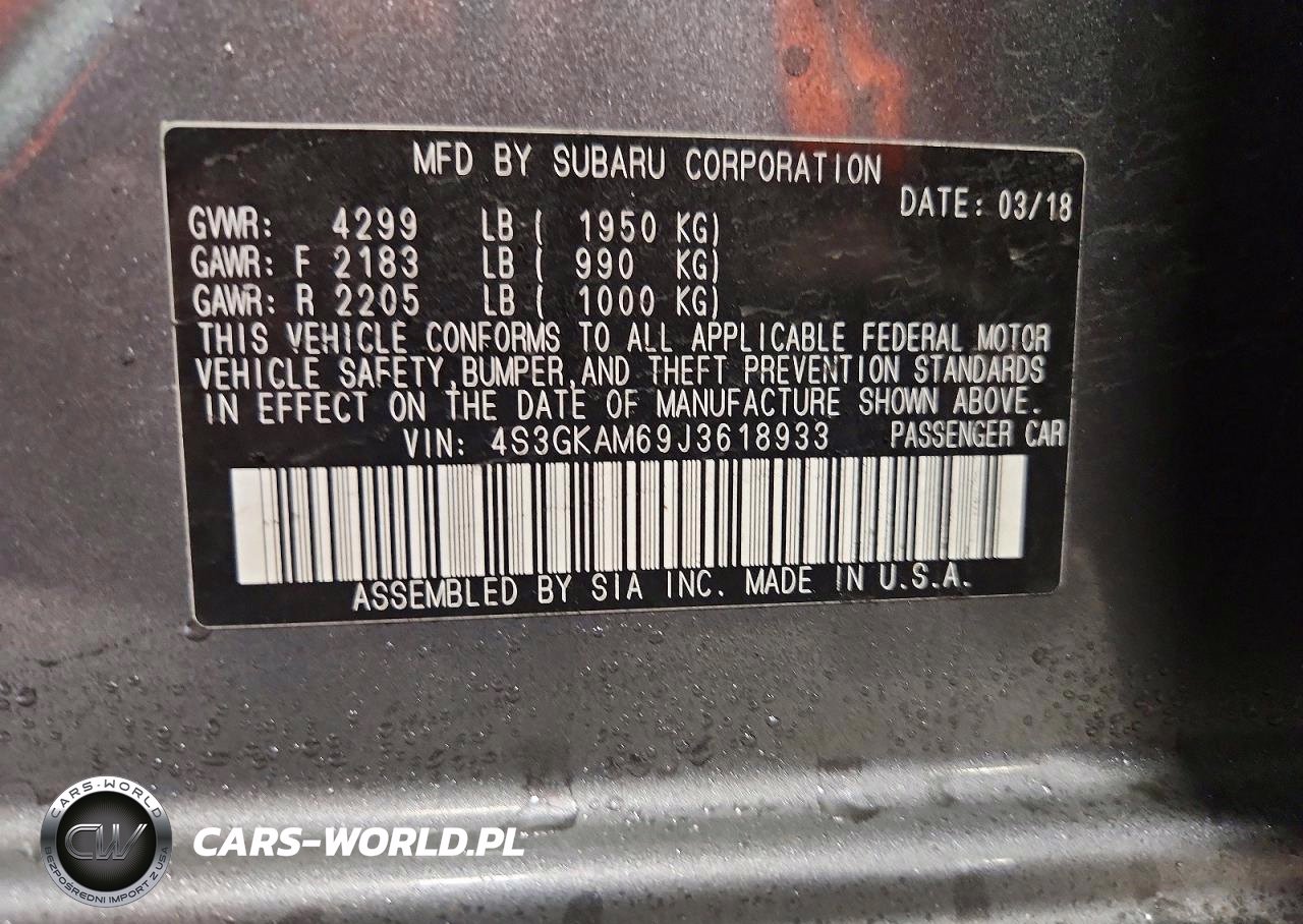 Copart Nr: C-79926595 VIN: 4S3GKAM69J3618933 Port: Indianapolis, IN